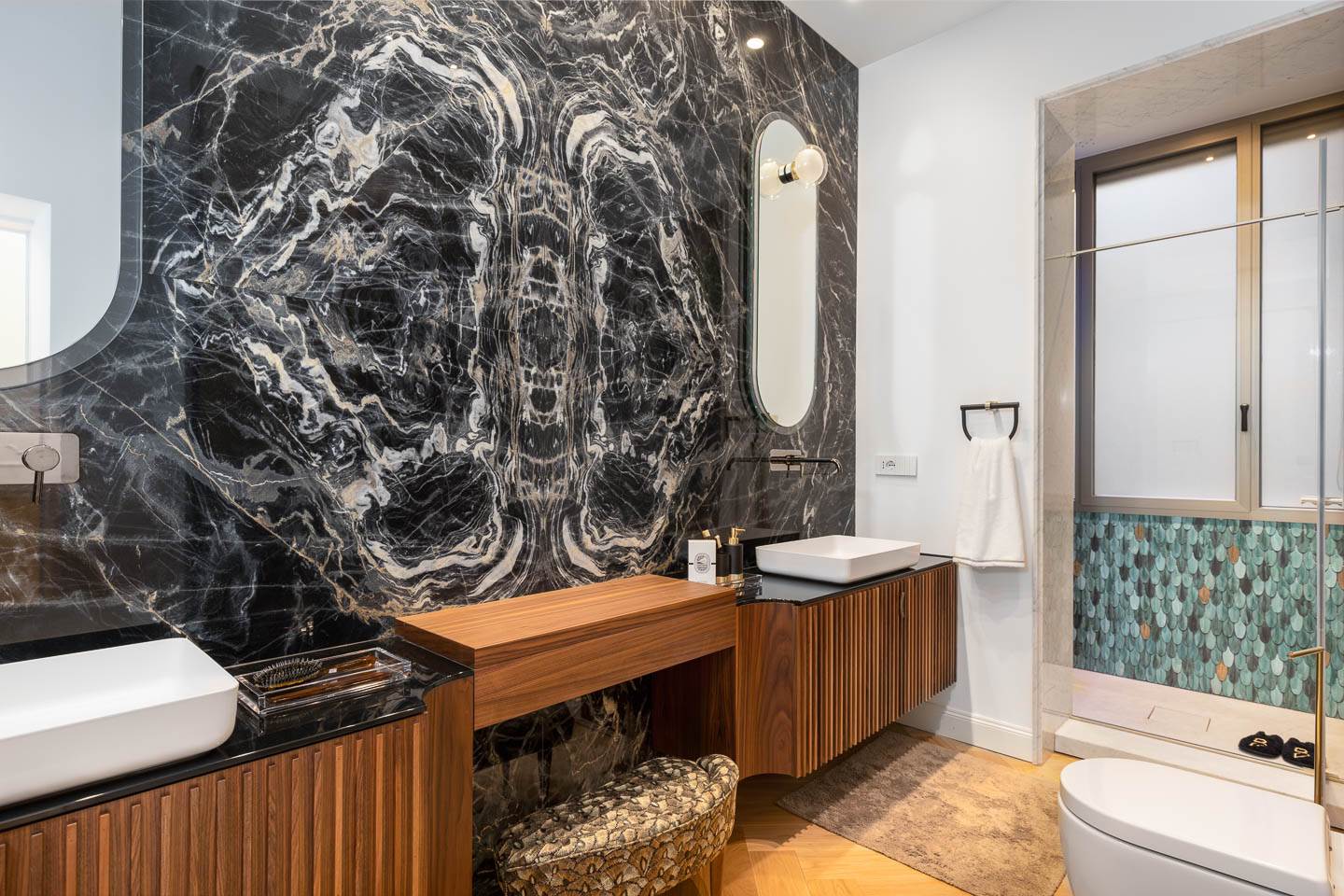 Nella nostra MARBLE CHIC SUITE, l'arte del buon vivere si fonde con un'estetica raffinata per creare spazi che celebrano il gusto unico e lo stile incomparabile. Ogni ambiente è pensato per stupire, confortare e ispirare. Dalle linee pulite dell'architettura alla palette di colori suadenti, ogni elemento è stato curato con rigorosa attenzione e disegnato per armonizzarsi con chi è abituato al lusso di respirare bellezza ogni giorno.