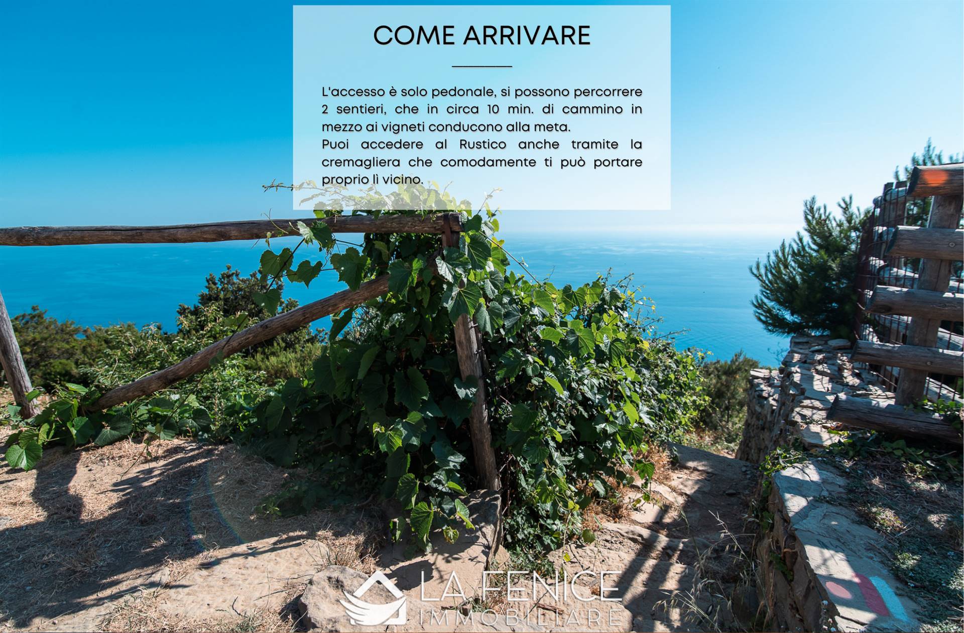 l'Accesso è solo pedonale e, dalla strada carrabile, si possono percorrere 2 sentieri (uno che arriva da sotto ed uno che arriva da sopra) che in circa 10 minuti di cammino in mezzo ai vigneti conducono alla meta, puoi accedere al Rustico anche tramite la cremagliera che comodamente ti può portare proprio lì vicino, per poterla usare devi fare però la richiesta presso la cantina sociale.